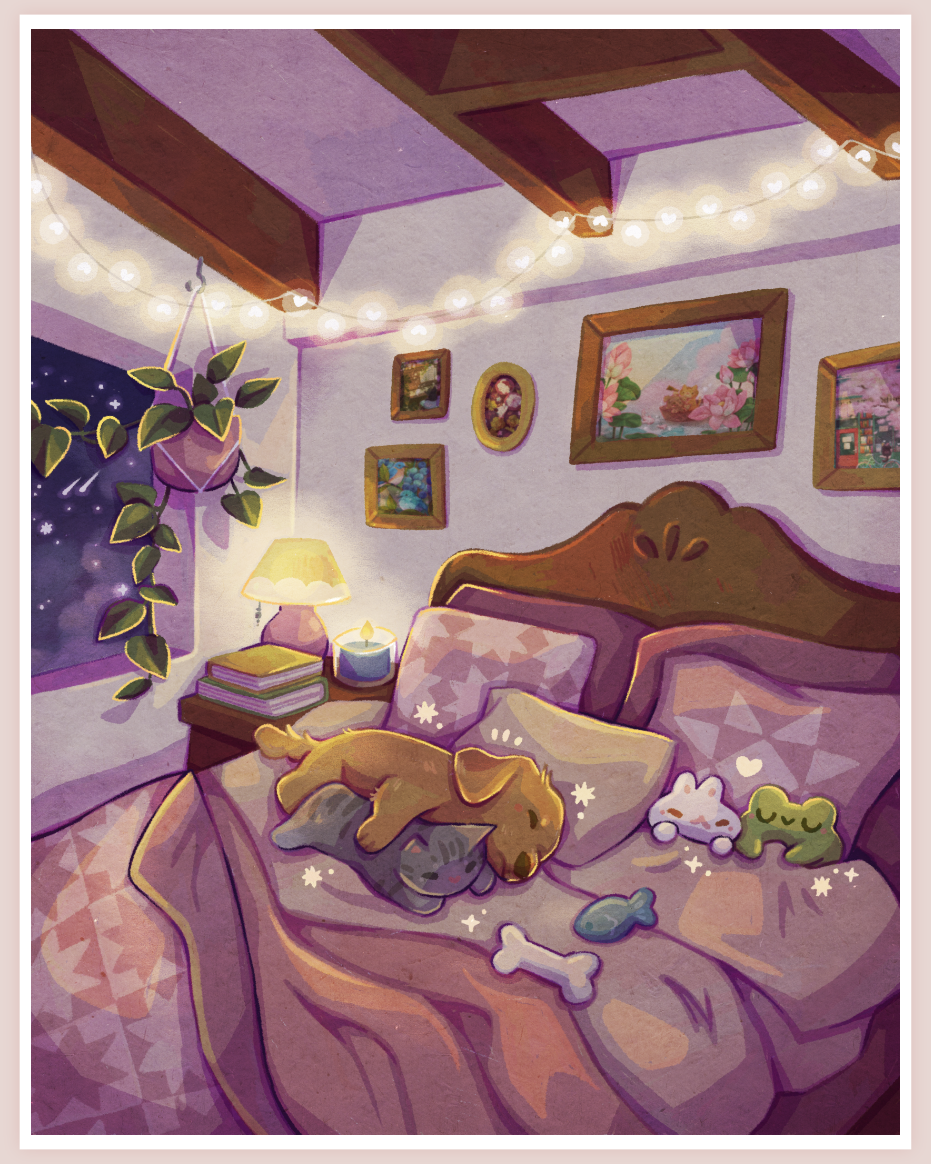 Prints measure 11 x 14 inches and have a thin white margin. They are illustrated and packed by me in my little home studio.