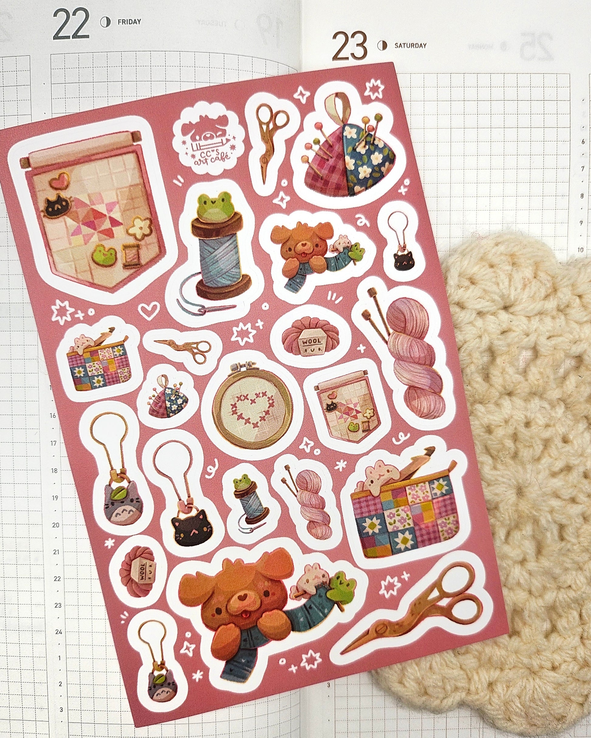 A set of stickers inspired by my obsession with all things fiber arts. These vinyl sticker sheets are 4 x 6 inches.
