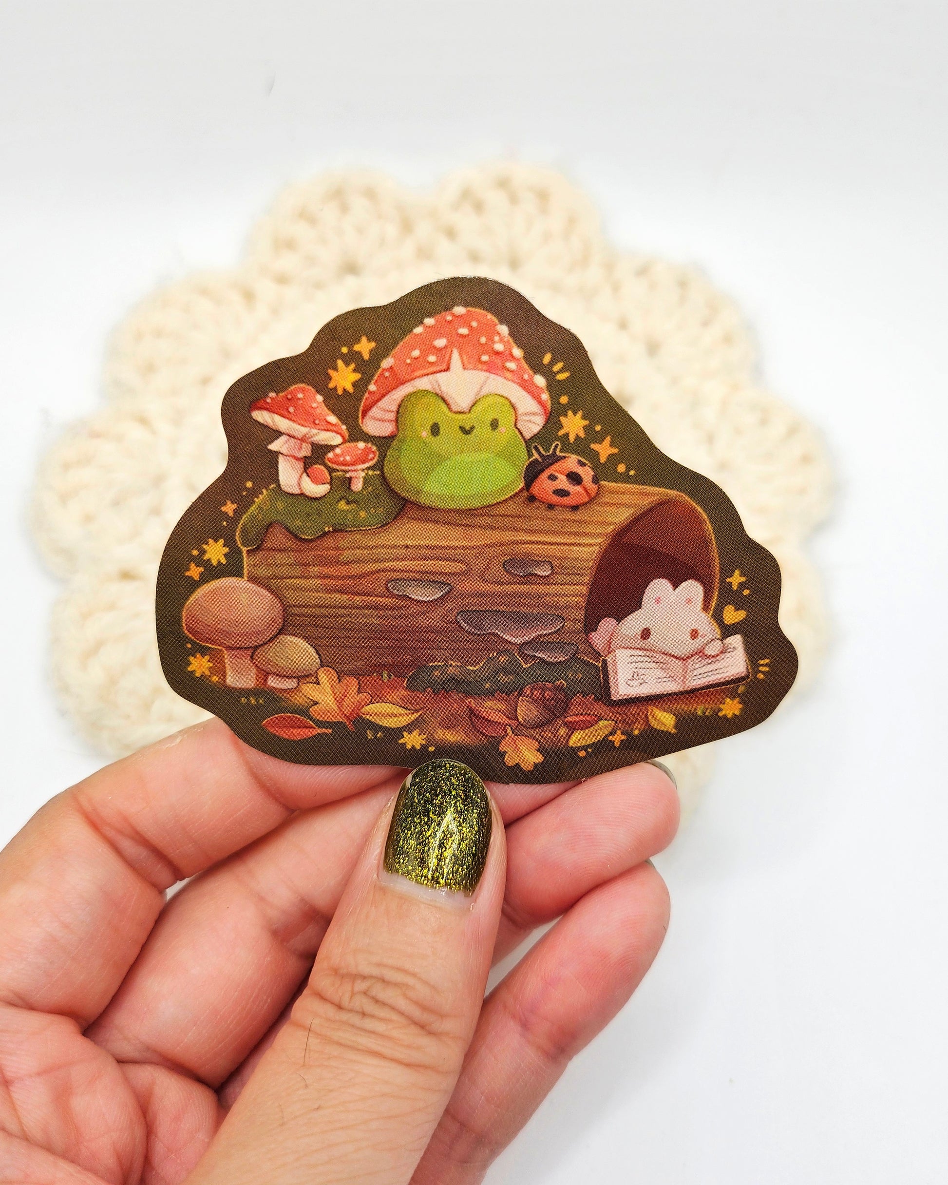 The sticker measures 2.25 x 2.75 inches. It is water resistant (so you can stick it on your water bottle!) but not dishwasher safe. All illustrations are hand-drawn by me in my little home studio.