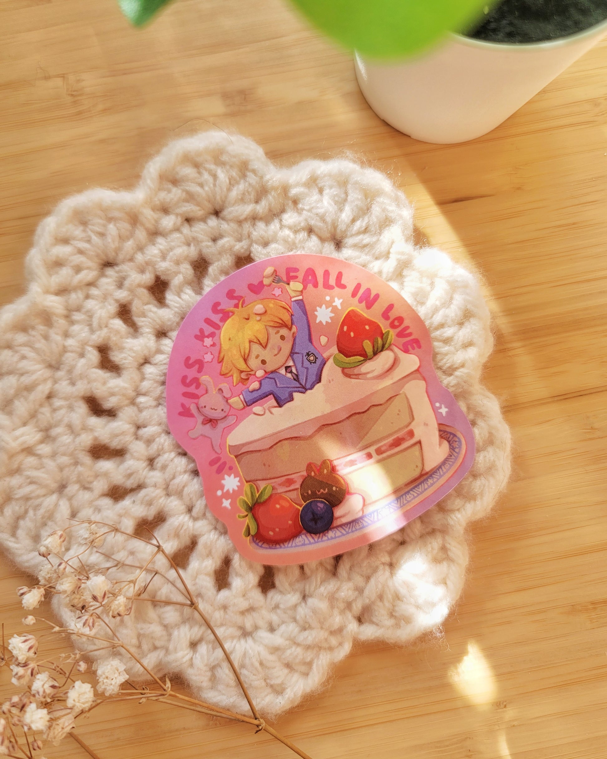 A vinyl sticker of my Kiss Kiss illustration, inspired by Ouran High School Host Club.