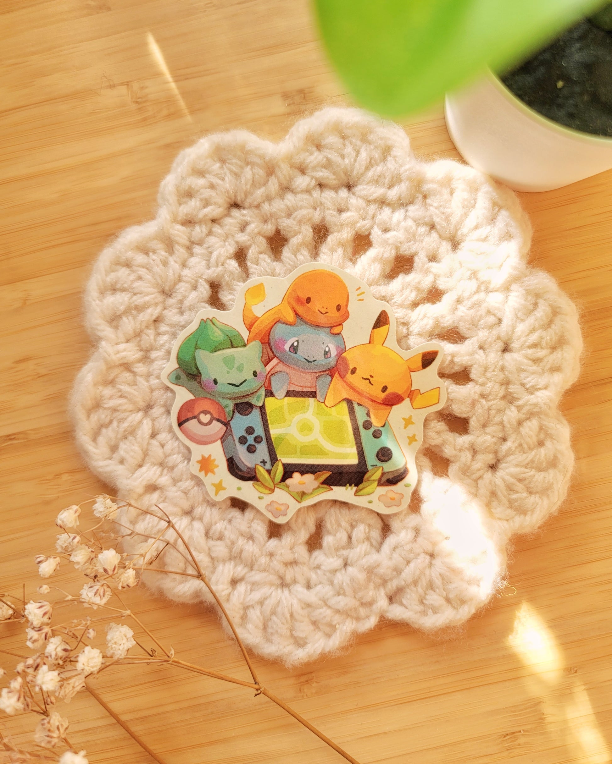 A vinyl sticker of my Let's Play illustration, inspired by Pokemon.