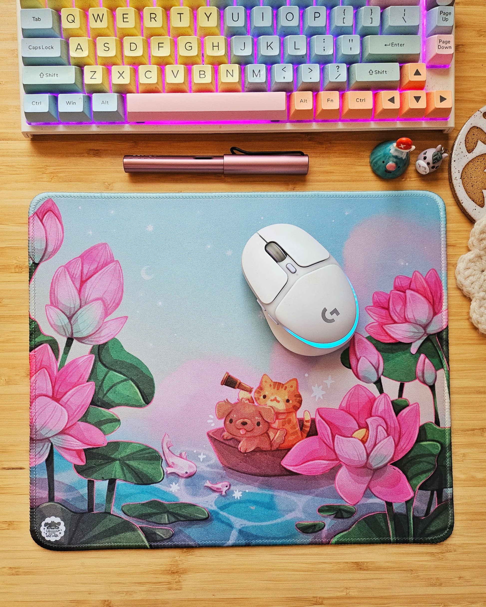 A thick mousepad perfect for protecting your desk and adding some color to your work space! This mousepad measures approximately 10.5 x 12.5 inches and is 3 mm thick, creating a nice plushy surface for your mouse to glide across as you work and game.