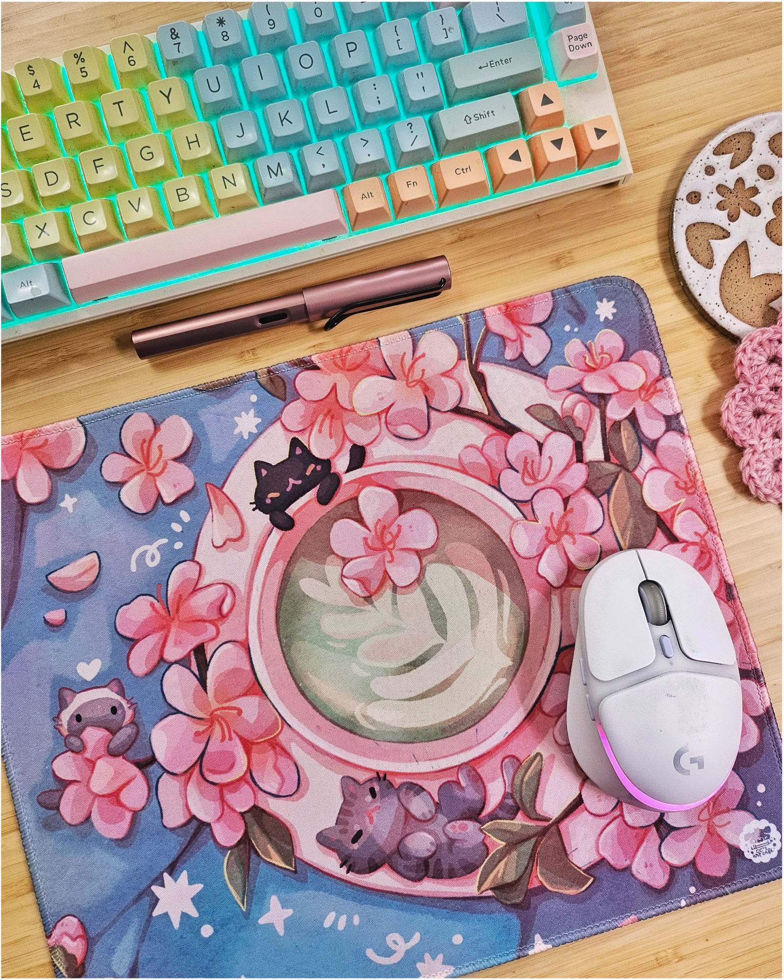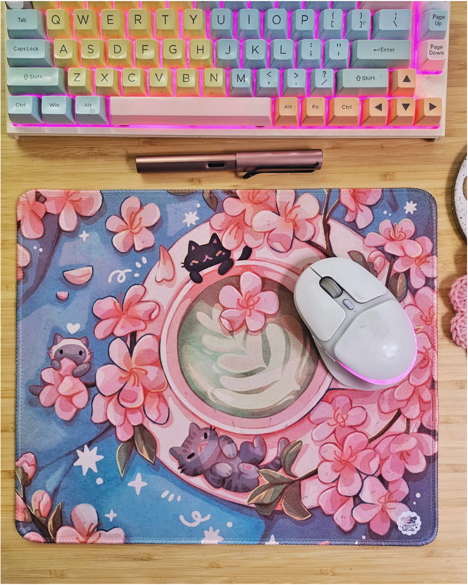 A thick mousepad perfect for protecting your desk and adding some color to your work space! This mousepad measures approximately 10.5 x 12.5 inches and is 3 mm thick, creating a nice plushy surface for your mouse to glide across as you work and game.