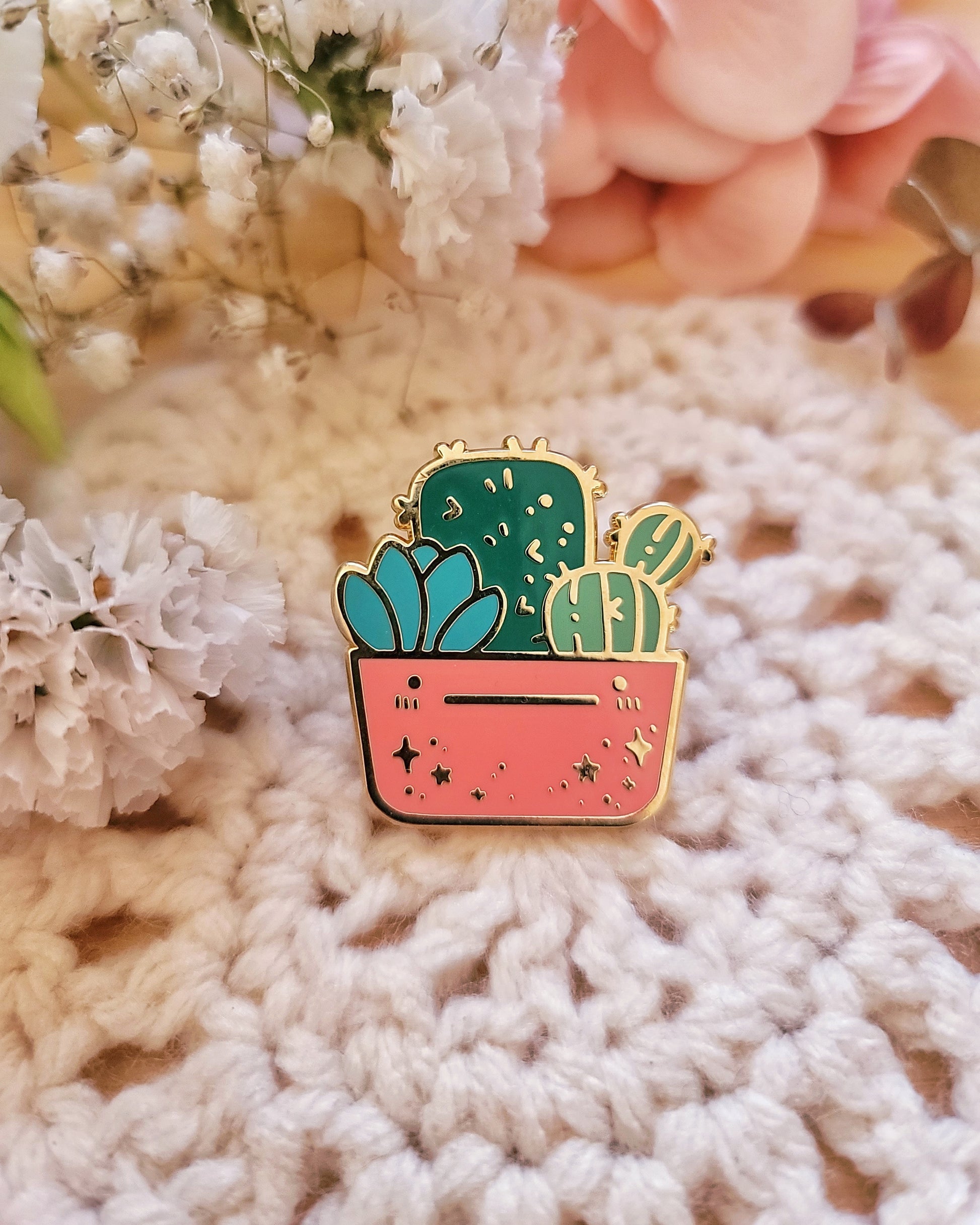 This enamel pin is a 1.25″ hard enamel gold pin, making it beautiful and durable. It has two blue rubber backs to help you fasten it to whatever you choose, and the two backings help ensure that the pin doesn’t spin around when you wear it!