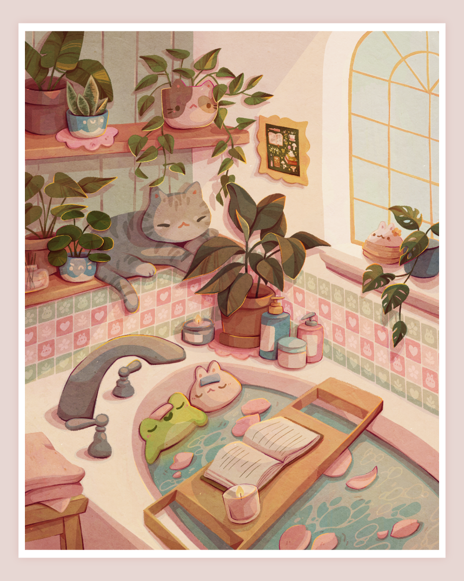 a few friends quietly relaxing before beginning their day. Originally part of my 2024 Cozy Days calendar!