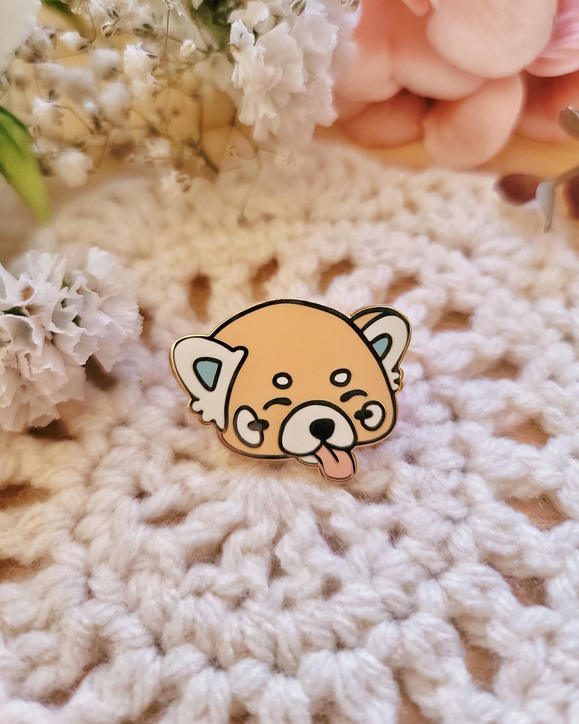 This enamel pin is of a playful little red panda! It's a 1.25" hard enamel gold pin, making it beautiful and durable. It has two pink rubber backs to help you fasten it to whatever you choose, and the two backings help ensure that the pin doesn't spin around when you wear it!