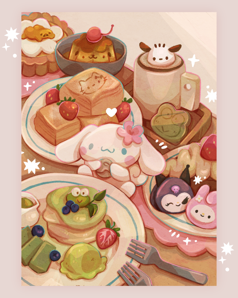 Inspired by some of our favorite cute and sweet characters, this desserts print has a bunch of little friends hidden around!