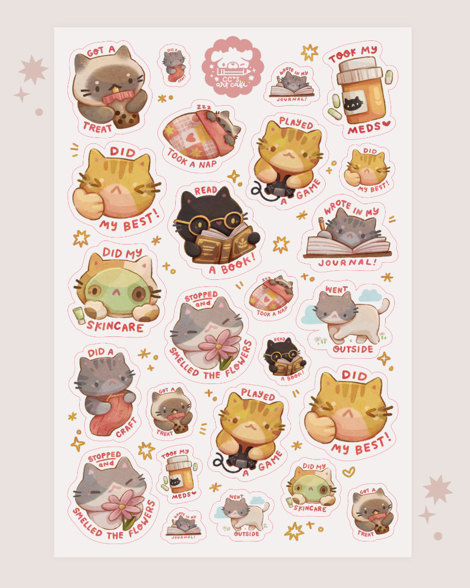 Self Care Kitties Vinyl Clear Sticker Sheet
