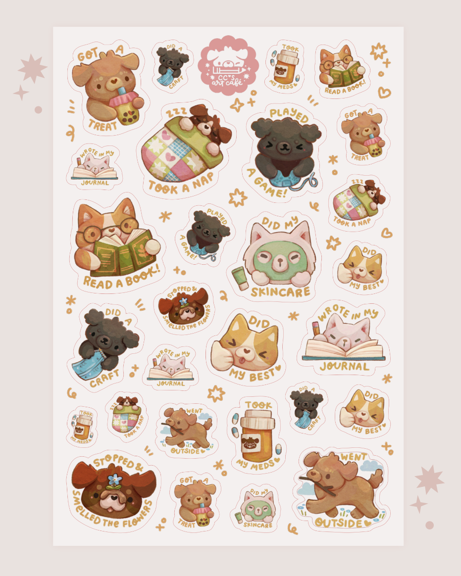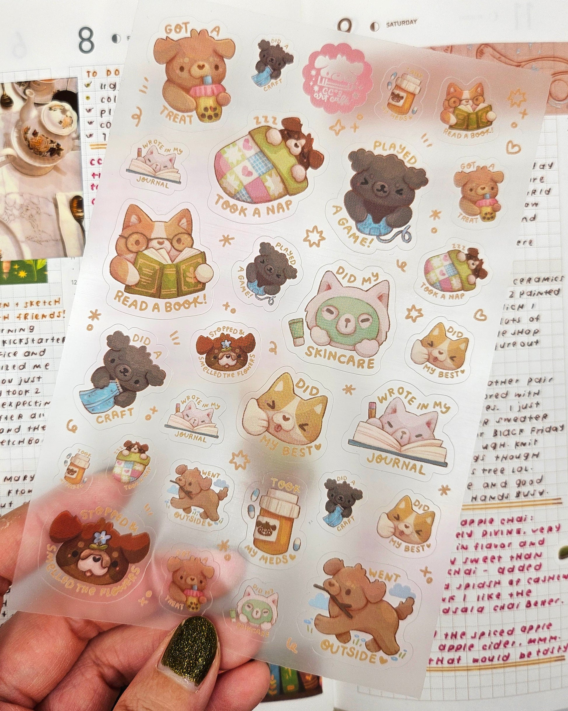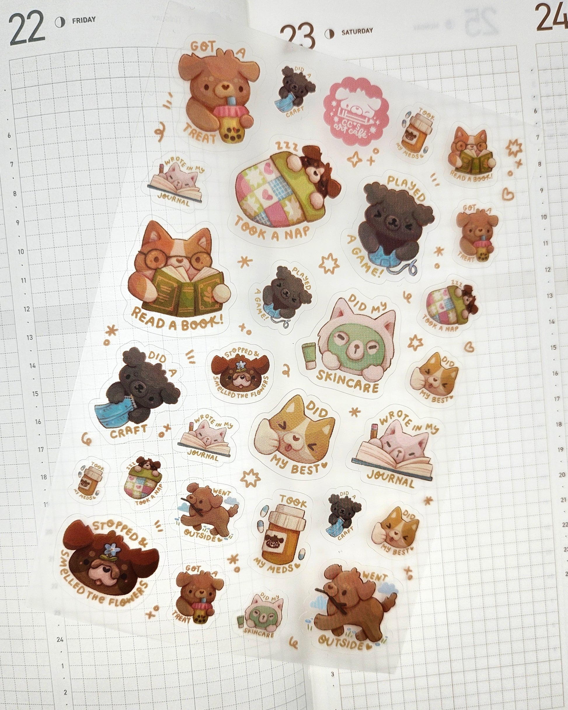 Self Care Puppies Vinyl Clear Sticker Sheet