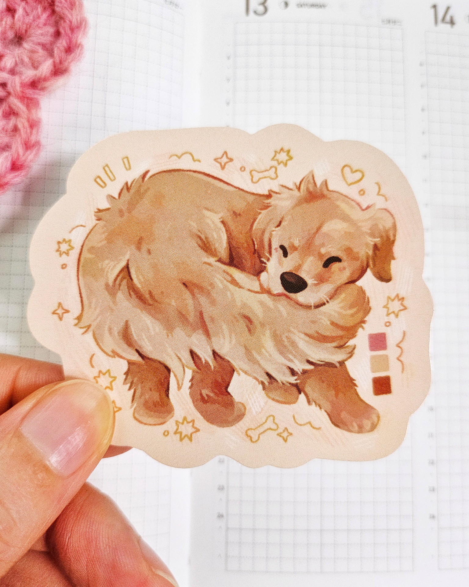 The sticker measures 2.5 x 2.75 inches. It is water resistant (so you can stick it on your water bottle!) but not dishwasher safe. All illustrations are hand-drawn by me in my little home studio.