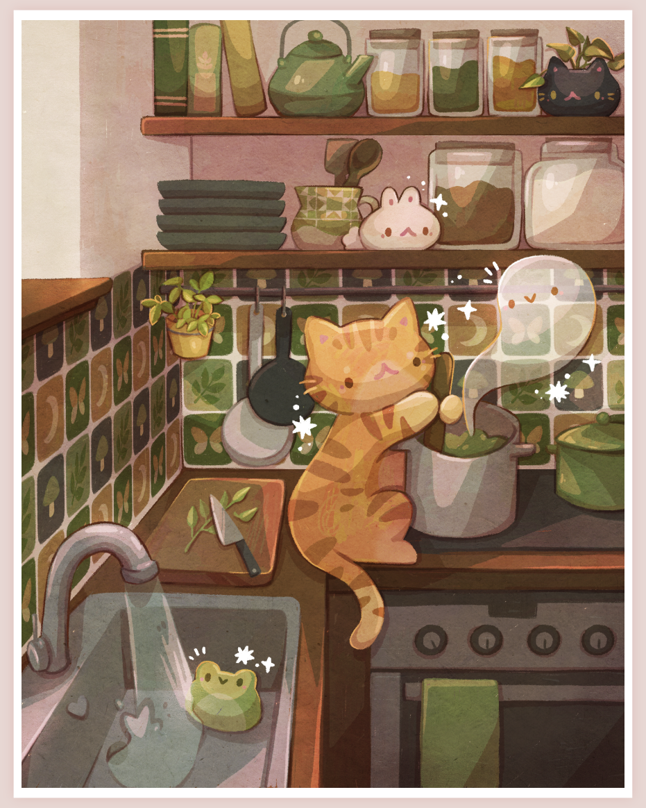 Prints measure 11 x 14 inches and have a thin white margin. They are illustrated and packed by me in my little home studio.