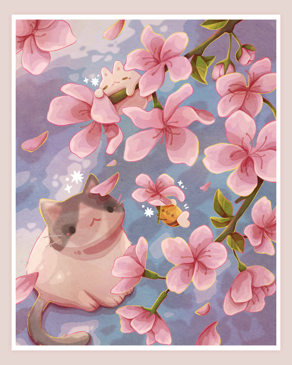 some friends watching the cherry blossoms bloom. Originally part of my 2024 Cozy Days calendar!